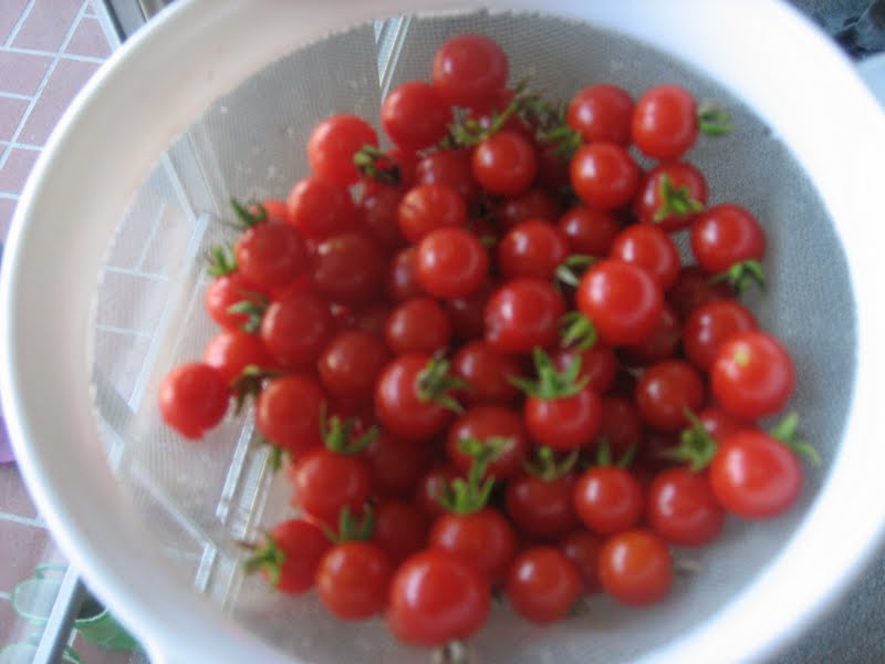 About three large fresh tomatoes, finely diced (and seeded if you prefer... I don't bother)